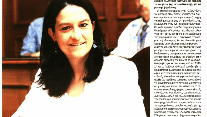 Μήνυμα της πολιτικής ηγεσίας του ΥΠΕΣ προς τους Έλληνες του εξωτερικού για την επιστολική ψήφο: Ευκαιρία να συνδιαμορφώσουμε, όλοι μαζί, το παρόν και το μέλλον της χώρας μας