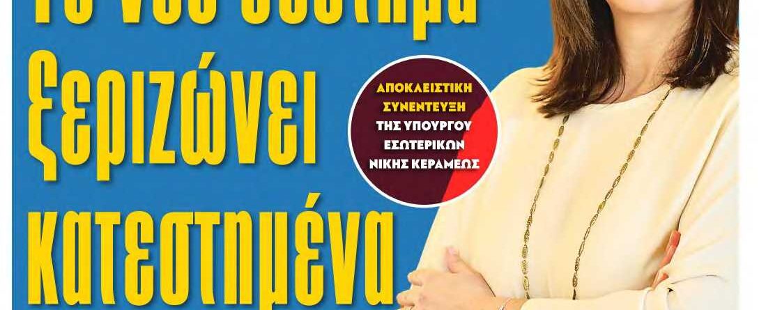 Συνέντευξη της Υπουργού Εσωτερικών Νίκης Κεραμέως στη δημοσιογράφο Ντόρα Κουτροκόη για την εφημερίδα «ΤΟ ΜΑΝΙΦΕΣΤΟ».