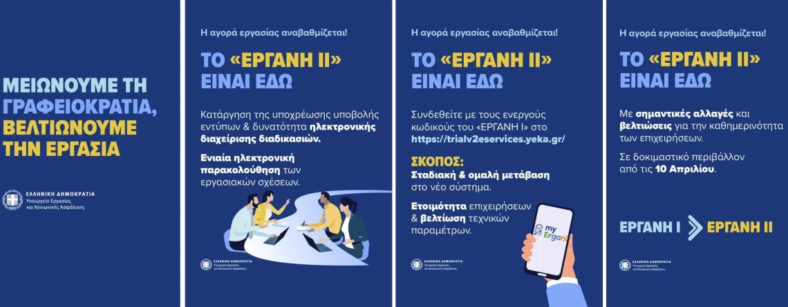 Σε δοκιμαστική λειτουργία τέθηκε από την Πέμπτη 10 Απριλίου 2025 το νέο πληροφοριακό σύστημα «ΕΡΓΑΝΗ ΙΙ» του Υπουργείου Εργασίας και Κοινωνικής Ασφάλισης. Το πληροφοριακό σύστημα «ΕΡΓΑΝΗ ΙΙ» έρχεται να αναβαθμίσει και να απλουστεύσει τις λειτουργίες του υφιστάμενου συστήματος «ΕΡΓΑΝΗ Ι», παρέχοντας παράλληλα σημαντικές πρόσθετες βελτιώσεις στην...