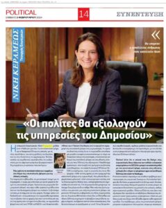 Συνέντευξη της Υπουργού Εσωτερικών Νίκης Κεραμέως στη δημοσιογράφο Πένυ Αβραμίδη για την εφημερίδα «Παραπολιτικά». →