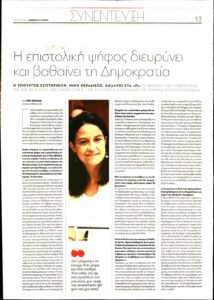 Συνέντευξη της Υπουργού Εσωτερικών Νίκης Κεραμέως στη δημοσιογράφο Τάνια Γεωργιοπούλου για την εφημερίδα «Καθημερινή της Κυριακής». →